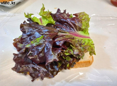 재료; 식빵, 달걀, 상추, 딸기 잼